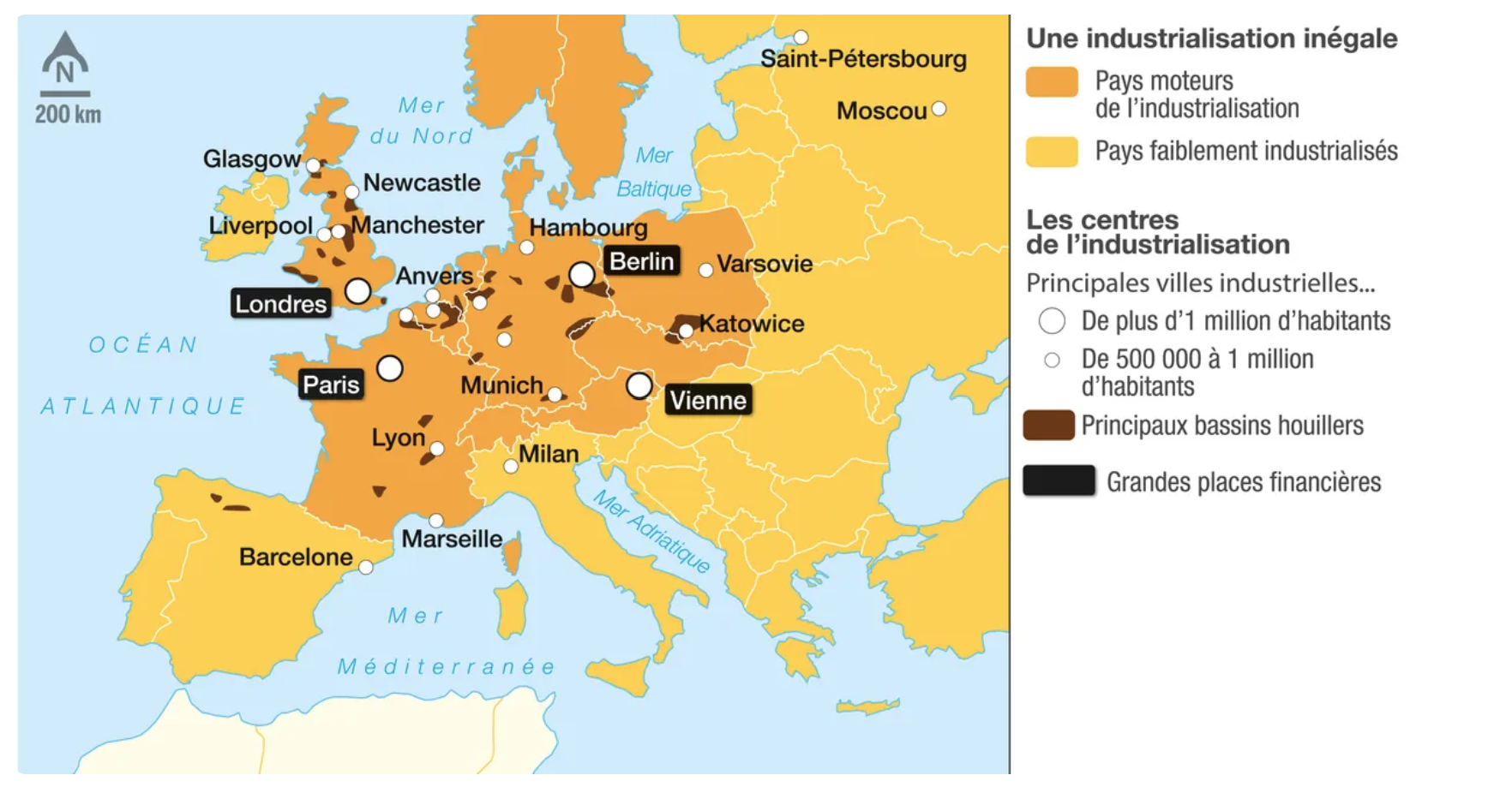 Je me repère dans l’espace (L’industrialisation en Europe du XIXᵉ au XXe siècle, Livre scolaire Histoire géographie, 4ème)